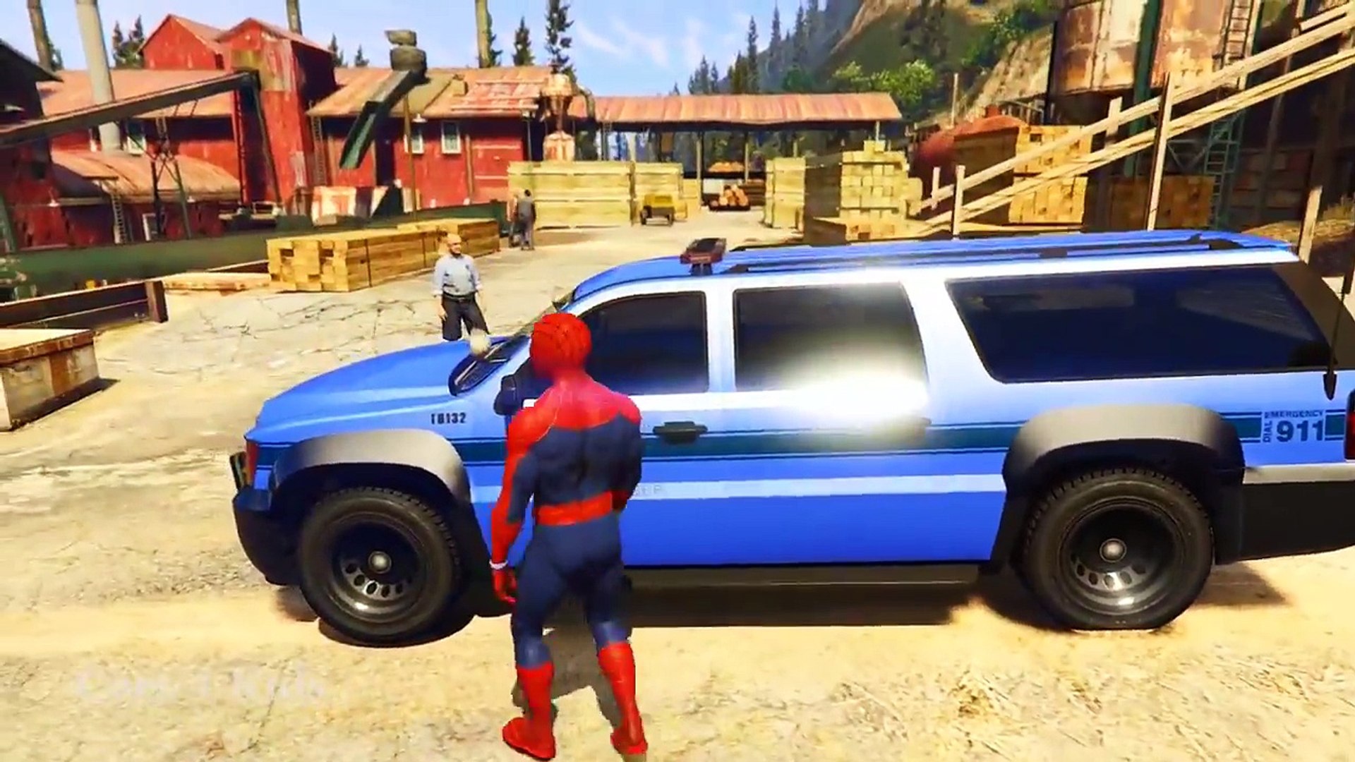 سيارات الشرطة في سبايدرمان الكرتون للأطفال مع أغاني للأطفال