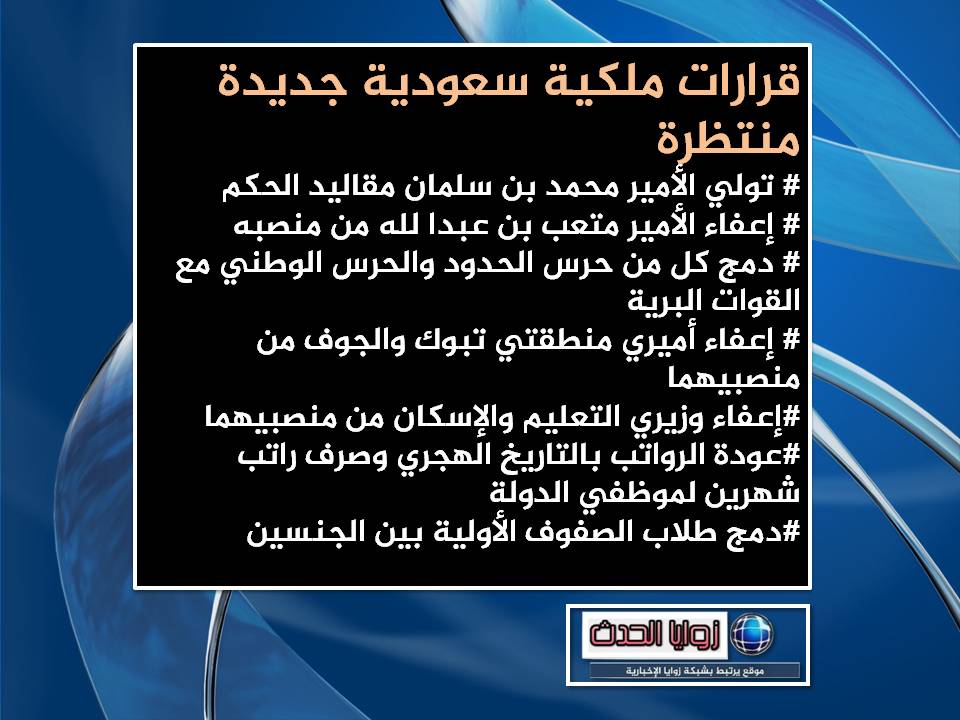 مصادر قرارات ملكية سعودية مرتقبة تولى الأمير محمد بن سلمان الحكم